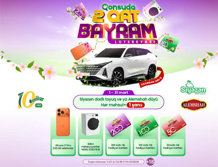 2-ci tiraj 07.04.2026 tarixində keçriləcək. 16-31 Mart 2026 tarixləri aralığında alış-veriş edib lotereyaya qoşulan adamlar arasında oynanılacaq.