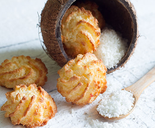 3 yumurtanın ağı ayrılır və köpüklənənə qədər mikserlə qarışdırılır, üzərinə şəkər tozu və 1 paket vanil əlavə edilərək qarışdırılmağa davam edilir. Daha sonra 2 stəkan rəndələnmiş kokos da qarışıma əlavə edilir və öncədən 160 dərəcə qızdırılmış sobada 20 dəqiqə bişirilir. Və kokoslu peçenyemiz hazırdır, nuş olsun!